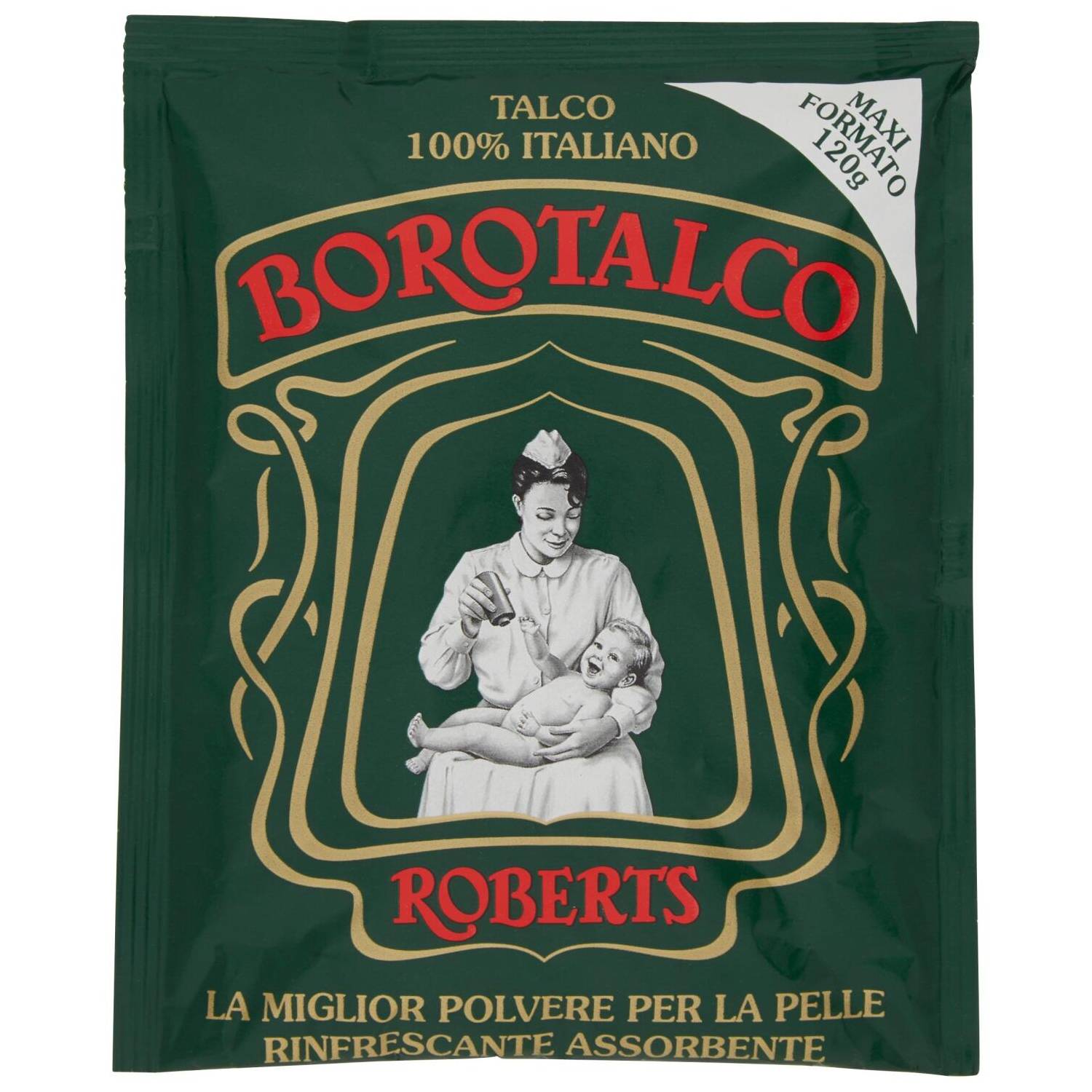 Borotalco Talco Busta 120 g è una polvere finissima di talco 100% italiano ad azione rinfrescante, vellutante, assorbente e lenitiva, ideale per alleviare i rossori e le irritazione di neonati, bambini e adulti.
